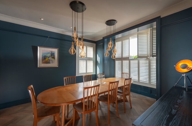 Whether you prefer a modern or traditional look, we can customise the colours and finishes of your shutters to match your interior design style. Our extensive range of materials ensures practical solutions for any room. For instance, we offer waterproof shutters for utility areas, materials that resist colour fading in sunlit living rooms, and bathroom shutters that withstand high moisture and humidity. We can provide expert advice on the best options for durability and suitability.